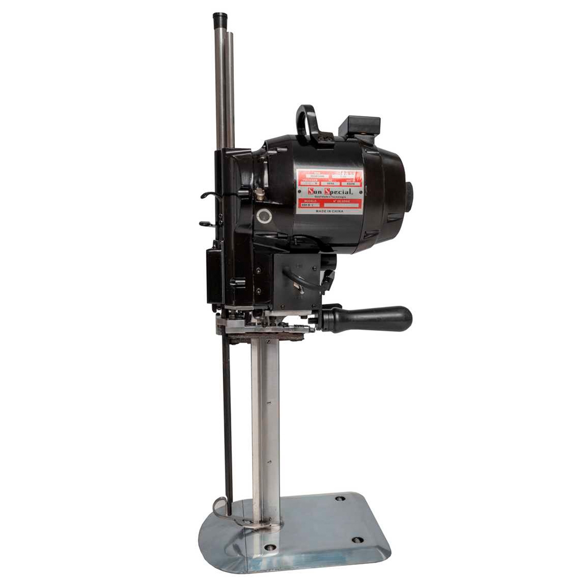 Máquina de corte com faca de 10 polegadas, forte e robusta, ideal para corte de enfestos, tecidos mais resistentes ou um número maior de camadas, devido a sua potência de 850W e a sua grande capacidade de corte de até 21cm.